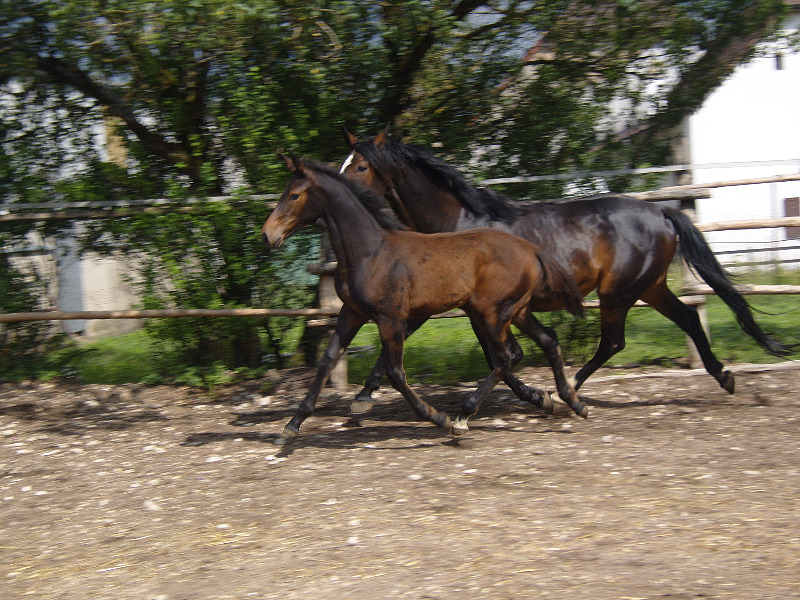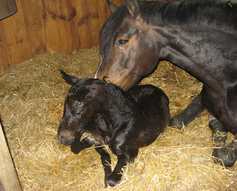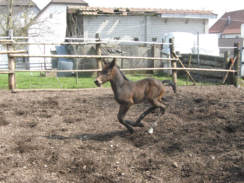 Nuna est revenue au Jura pour intégrer notre troupeau de poulinière. Elle a mis au monde une très jolie pouliche de Monte Bellini. (05.2016)